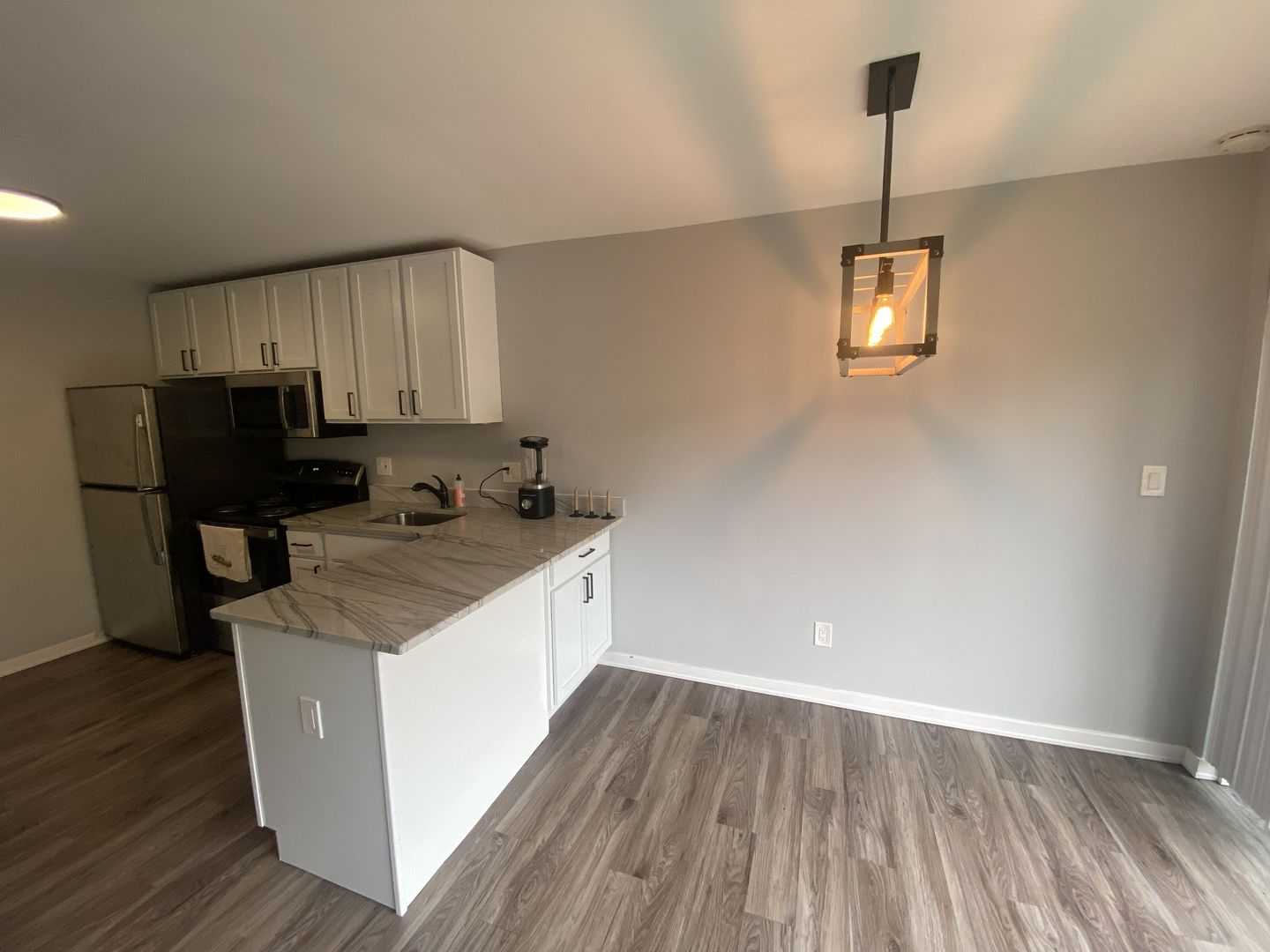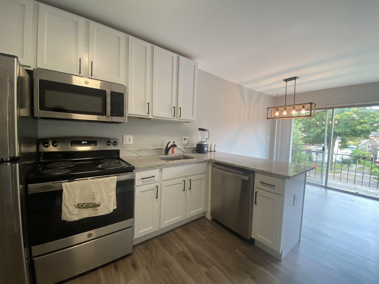 This sleek first-floor two-bedroom apartment offers modern comfort and thoughtful design in the heart of Ann Arbor’s Old West Side. The unit features updated finishes throughout, including stainless steel appliances, granite countertops, and durable vinyl flooring that provides a clean, contemporary look.