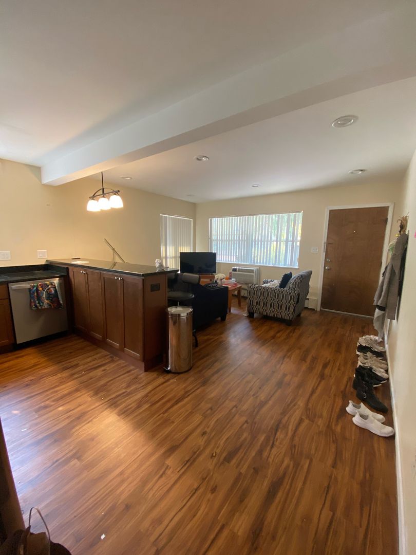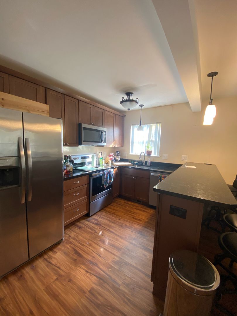 This location is one of our most popular due to the close proximity to central campus! This apartment has two bedrooms, air conditioning and has been newly renovated with wood floors, new lighting, new kitchen including dishwasher, and new paint. The lease includes one free parking spot, and the building has onsite laundry!