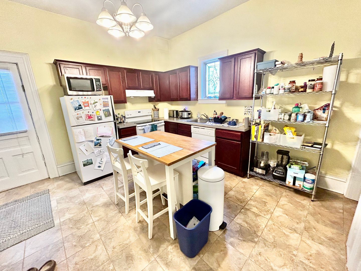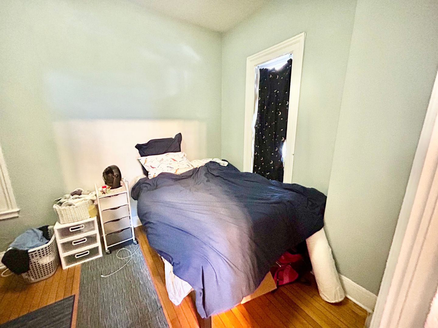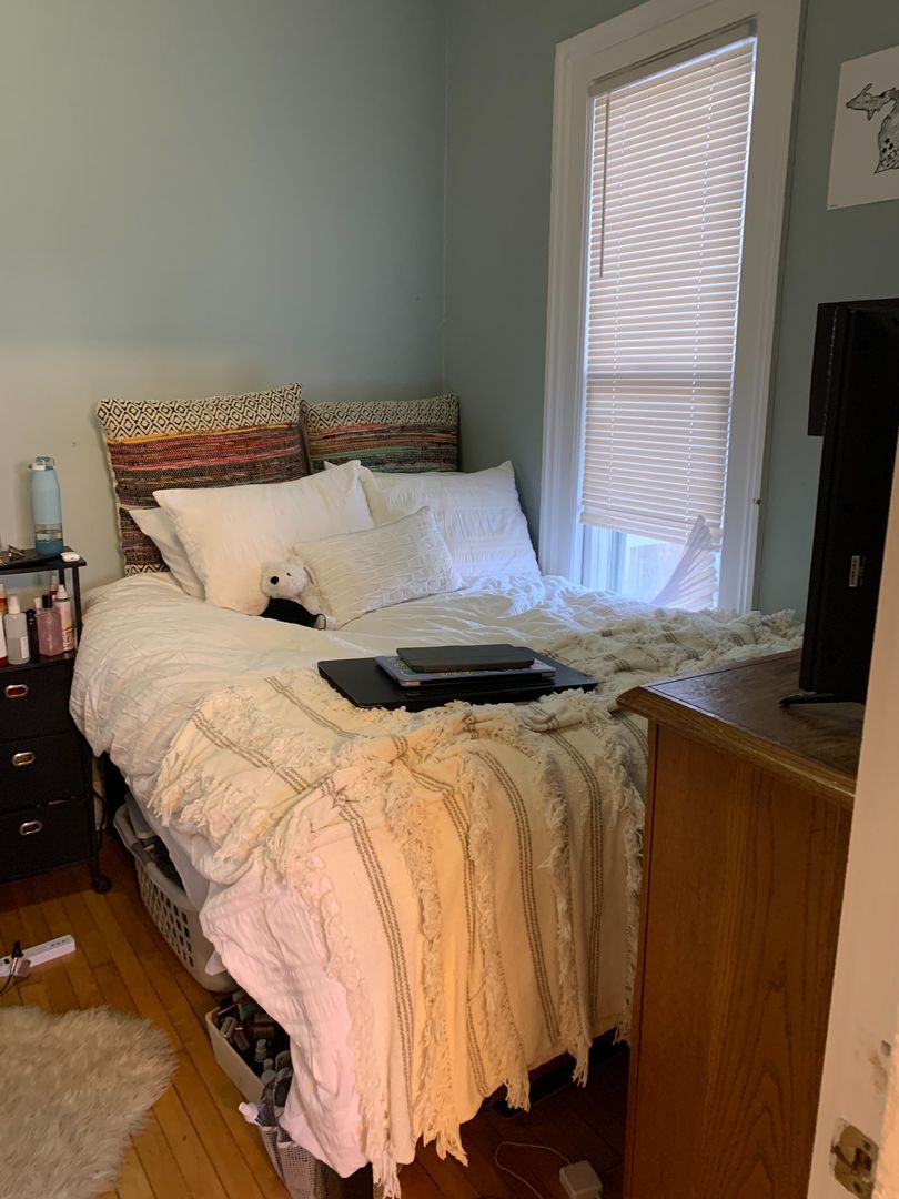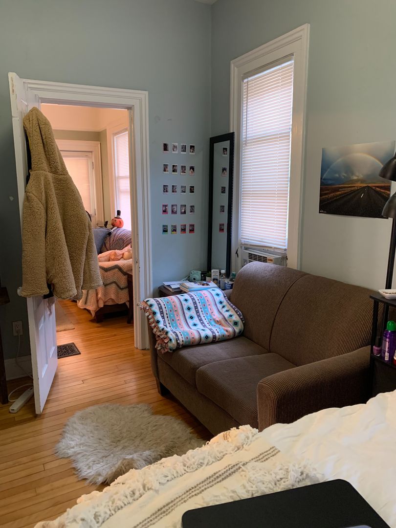 Spacious one bedroom apartment with a private entrance and covered porch located in a converted home near South Quad. The apartment has a large eat-in kitchen with dishwasher, air conditioning, hardwood floors, new paint, new kitchen, and new bathroom. The apartment is fully furnished and includes a parking space.